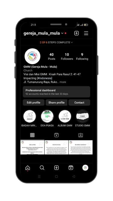 kita berakar kuat di dalam Firman, hidup di dalam persekutuan, memiliki gaya hidup doa, dan menunjukkan peduli terhadap sesama.